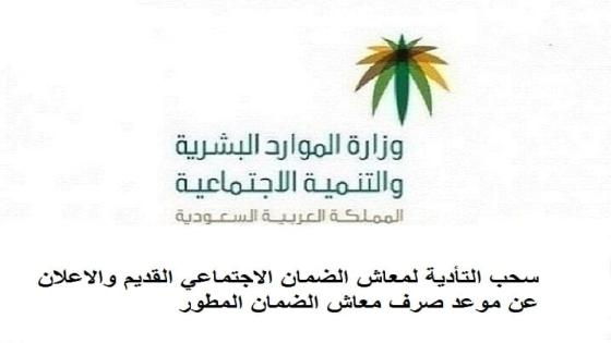 تم سحب التأدية لمعاش الضمان الاجتماعي القديم اليوم الثلاثاء ، والاعلان عن موعد صرف الضمان الاجتماعي القديم والضمان المطور من قبل وزارة الموارد البشرية والتنمية الاجتماعية، حيث اعلنت الوزارة عن موعد نزول الضمان القديم سيكون في اليوم الاول من كل شهر ميلادي